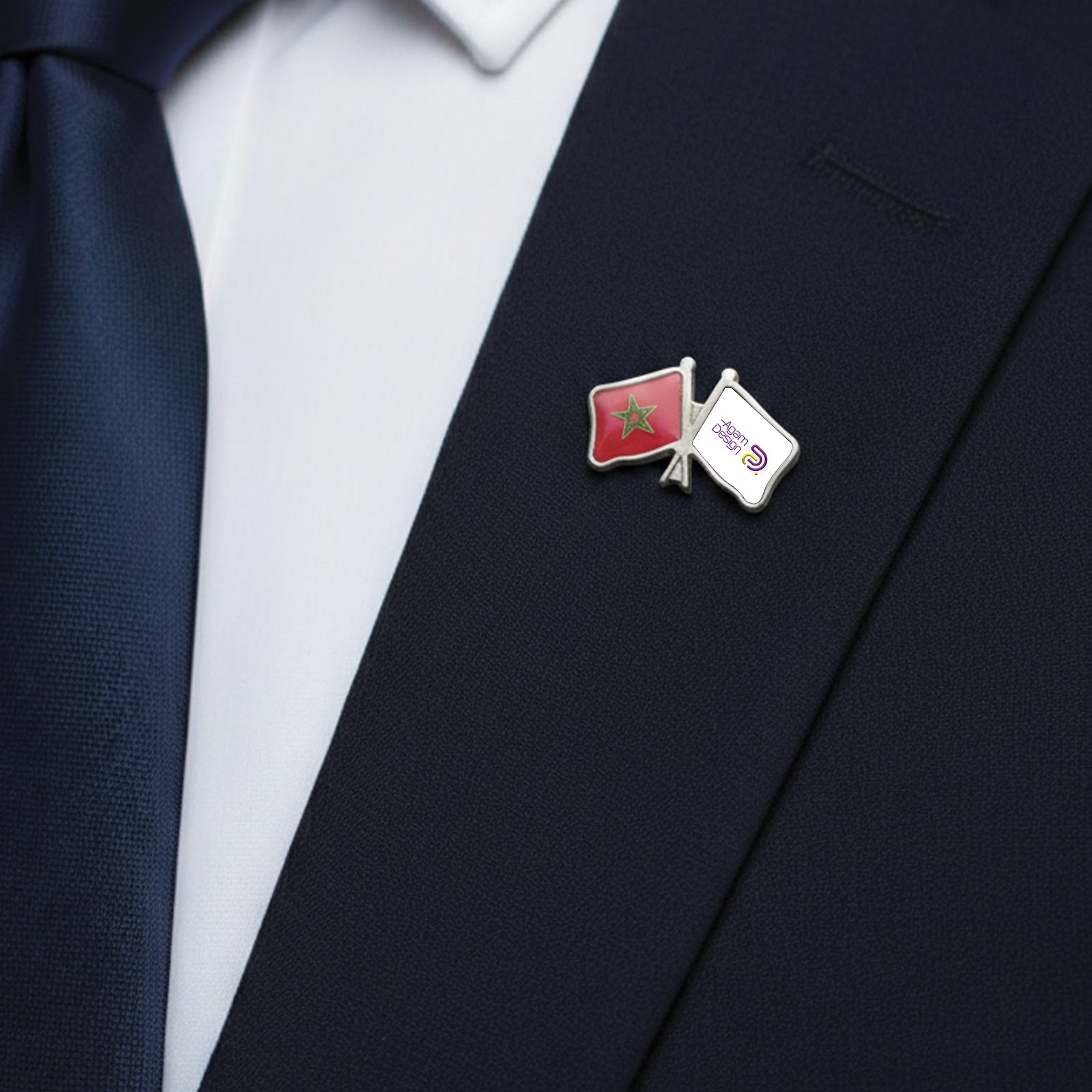 Symbole d’alliance et de coopération, ce pin’s met en scène le drapeau marocain croisé avec le pavillon de votre institution. Sa finition en émail haute définition et son vernis de protection lui confèrent un éclat durable. Idéal pour les sommets, les partenariats internationaux et les délégations officielles.